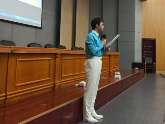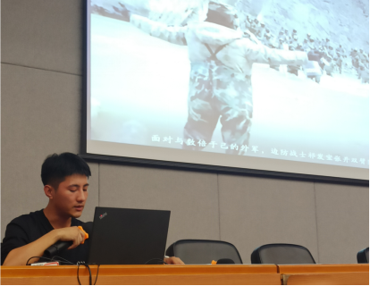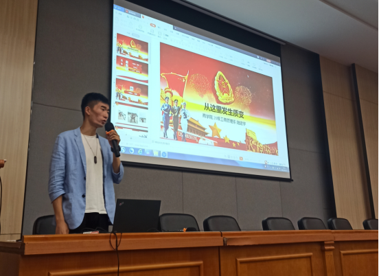 2019级工商管理专业任贺,讲述“我在天安门现场那一刻”。任贺同学带大家一起回忆了诗歌《海燕》,并生动的讲述了训练与七一当天的情形,“先辈们许我们山河无恙、国泰安康,我辈定将义不容辞,继往开来”是他的真挚情感,“请党放心,强国有我”的誓言回响在每一位同学耳中,让每一位与会同学都产生了共鸣。