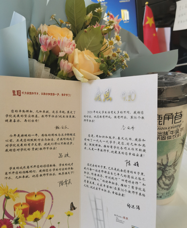 领导班子把对老师的感谢和祝福都特制了贺卡送给每一位老师,老师们一致认为很感动于学院精心组织的活动,感受到了教师职业的意义。