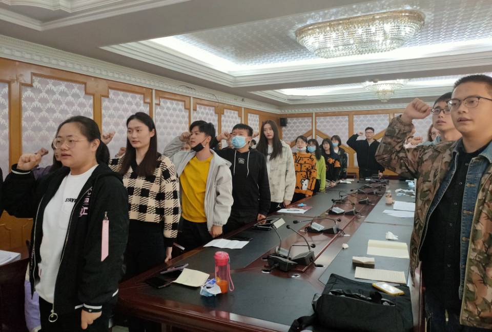 首先由支部书记闫慧凝宣布到场人数,明确可以召开会议。随后由傅麟涵、吴浩宇、李依晨、赵雨心、王昔月、赵浩杰、马向阳、马恩泽、王从茜、曲鑫江、张迪,庞子惠,蒲灵茜,沈丹萍,李颖,高一平,刘芷含,曲植,张静,宋卢莹,程怡,徐敏鹤,王红岩,丁飞虎24名入党积极分子宣读入党志愿书,汇报对党的认识、入党动机和个人情况。每一名入党积极分子宣读结束,都有其入党介绍人、与会其他党员对积极分子是否符合发展条件发表意见。随后,与会党员充分讨论并发表意见。大会采取无记名投票方式,由正式党员的投票,根据投票结果24名积极分子一致通过,发展成为中共预备党员。