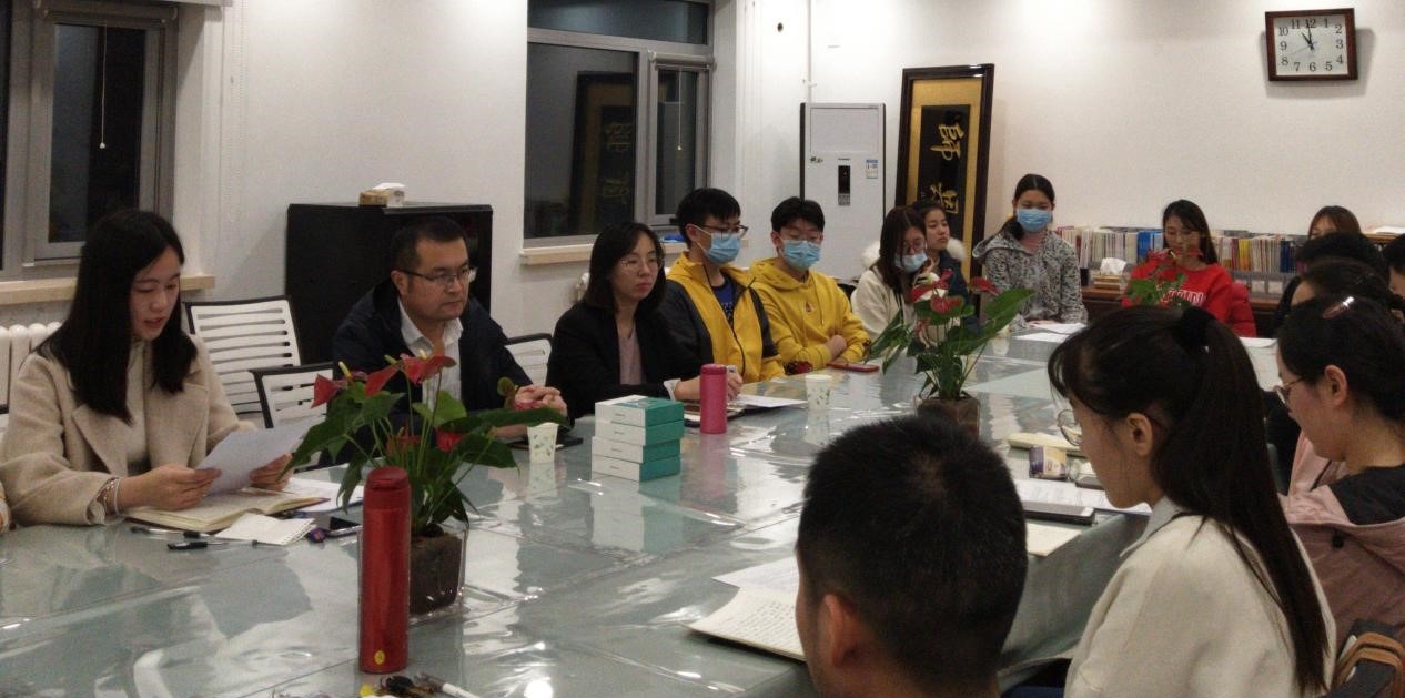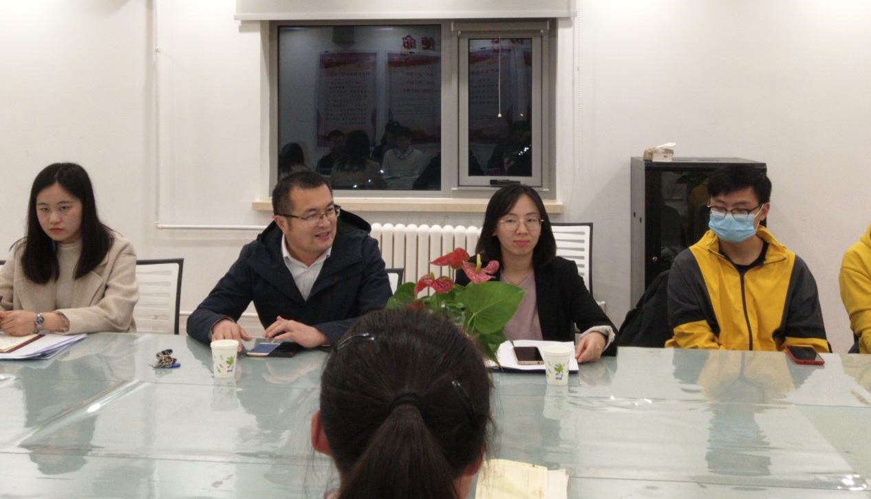 410开展理论学习会,校办主任刘世波参会解读十九届五中全会精神,并与同学进行交流座谈。此次会议由党支部书记陈霄英主持,支部全体党员到场。