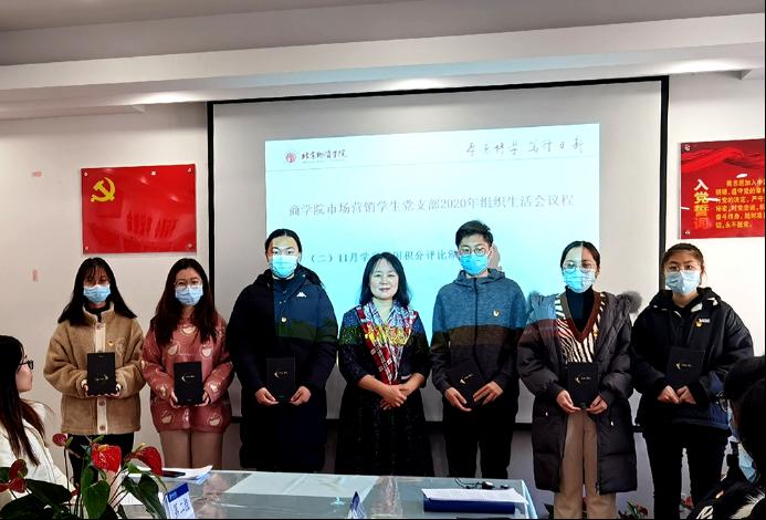 本次组织生活会围绕“使命在肩 奋斗有我”主题教育,结合疫情防控背景下如何做合格党员的主题,与会党员严肃、认真的展开了分析总结、批评与自我批评。市场营销学生党支部副书记李新雨对2020年支部工作进行了汇报,将本支部三会一课、理论学习、疫情防控期间开展的特色活动、支部组织生活会准备情况等方面的内容进行了介绍。会上还公示了本支部党员的学习强国积分,并根据学习积分,对排名前6名的学生党员进行了表彰,校党委副书记宋晓欣为受表彰学生进行了颁奖。