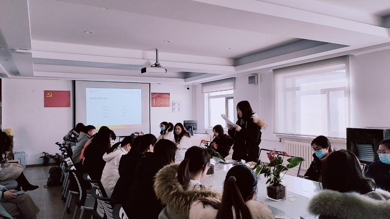 会计学第一学生党支部于人文楼410会议室召开了2020年秋季学期预备党员转正会。会议讨论关于蒋天娇、刘柏茹、孙俪尔、孙梦琪、王玥、张可佳、张馨予、赵芮8名同志申请转为正式党员的问题。本次转正会由会计学第一学生党支部书记闫慧凝主持,组织员贺玉英老师列席,学生党员共42人参加会议。