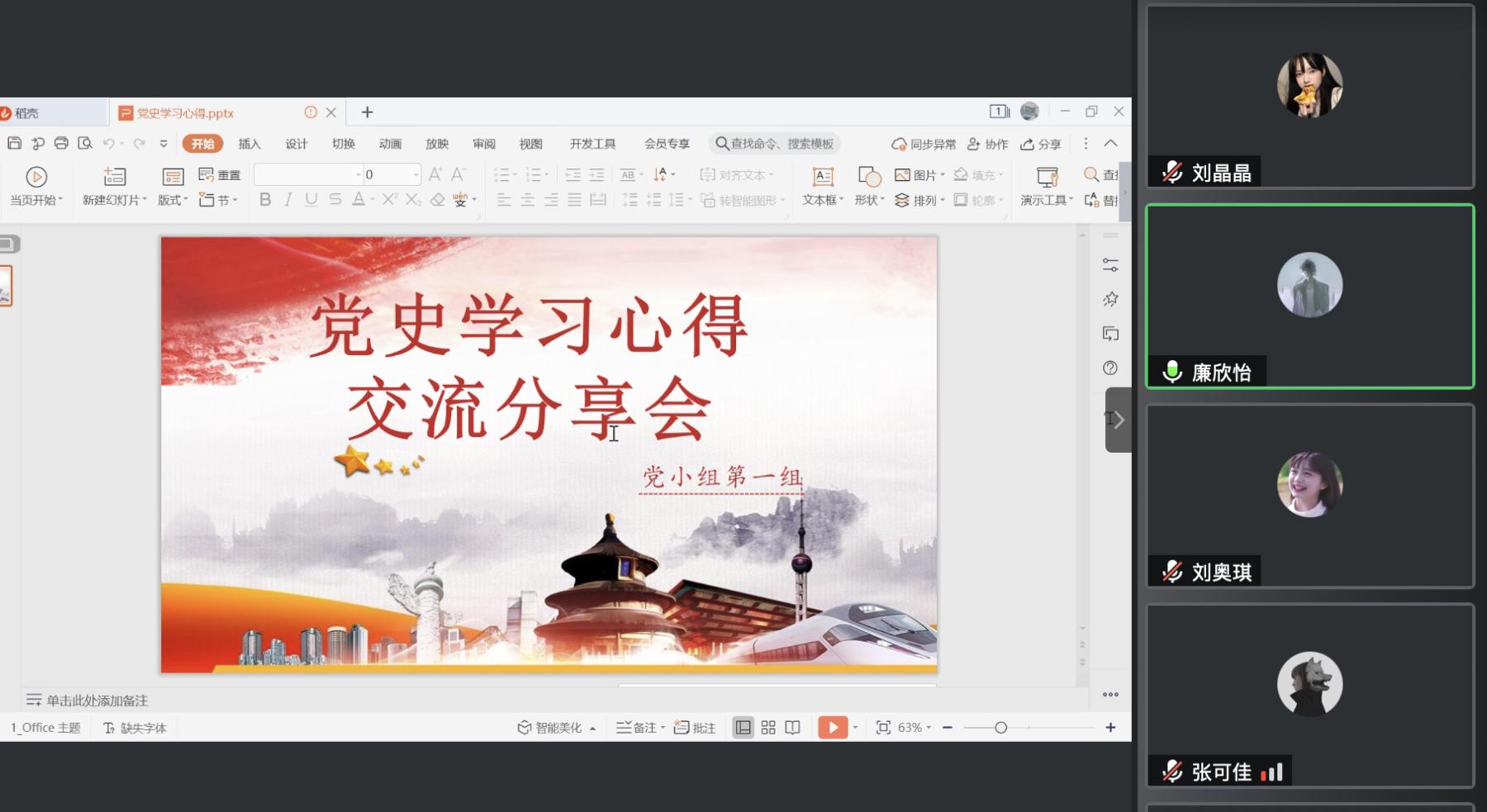 会计学专业学生第一党支部以党小组为单位在线上召开四月理论学习心得分享会,会议分别由各党小组组长主持,会计学专业学生第一党支部全体成员参加。