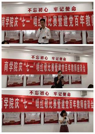 在科研楼410举办庆“七一”唱红歌比赛暨建党百年教师座谈会,会议邀请各支部党员教师、民主党派和无党派人士一同参加,用嘹亮红歌唱响对党和国家的热爱。红歌赛后,学院组织老师们交流了党史学习教育以来各自的体会,表达了对党和国家取得的历史性成就的自豪和喜悦。