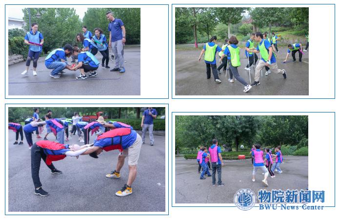 团队组建完毕后进入“挑战NO.1”主题游戏环节。此游戏包括不倒森林、大河之舞、同心鼓、能量传递和团队有我更精彩5个不同类型的游戏。 大家齐心协作,在各项活动中都找到突破的方法。跳大绳环节,同学们4个人排成一排,挑战这道“1+1+1+1”的加法。大家不断尝试、推翻、再尝试,凭借不服的韧劲,跳不齐时马上调整战略、提出解决方案,并没有埋怨和放弃,而是不断鼓励和打气。