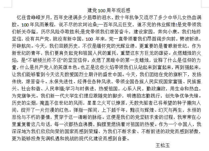 接着,学生党员对于观看庆祝中国共产党成立100周年发表感想,颜子滨发言:“没有共产党,就没有新中国”。在2021年中国共产党成立一百周年之际,我很荣幸能够加入中国共产党这个大家庭,成为一名预备党员,不仅仅是一种荣誉,更是一种责任,深感责任重大。初心易得,始终难守,我们需要加强政治理论,不断提高思想觉悟和党性修养,从思想到行动,扎扎实实,兢兢业业,用自己的实际行动履行自己的誓言,争取早日为社会主义现代化贡献自己的力量。我国第一个百年奋斗目标已经实现,正在意气风发向着第二个百年奋斗目标迈进,作为新时代的中国青年,我们要以实现中华民族伟大复兴为己任,增强做中国人的志气、骨气、底气,不负时代,不负韶华,不负党和人民的殷切期望!铮铮誓言铭于心,初心使命化于行!有幸能以一名大学生、一名党员的身份见证中国共产党一百周年华诞,祝福伟大的中国共产党生日快乐!赵苑发言:请党放心,强国有我!2021年7月1日,是中国共产党成立100周年,1921—2021年,这是信仰创造传奇的一百年。尽管没有能够到达现场观礼,却也倍感震撼:响彻天际的100响礼炮,气质昂扬的礼兵队伍齐头并进,青春靓丽的共青代表倾情颂歌……让我明确:党的100年,点燃信仰之光!党的100年,谱写英雄赞歌!建党已走过百年的辉煌路,现在已经到了启航时代新征程之时!习近平总书记说:“初心易得,始终难守。” 作为一名预备党员,我们要以史为鉴,开创未来,热爱祖国,热爱人民,始终坚持中国共产党的领导,坚持党的方针、政策;作为新时代的大学生,我们要始终跟党走,学好专业,志向高远,为人民美好生活而奋斗,不负韶华,不负使命,不负党和人民的殷切希望!