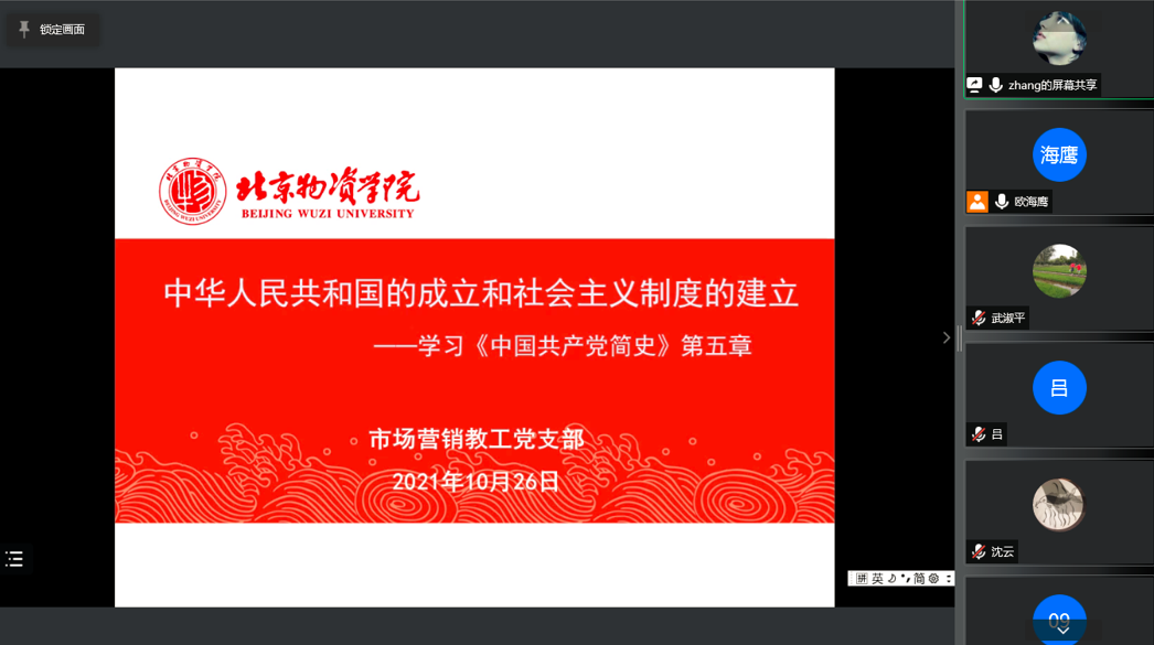 本次党课是市场营销教工党支部党史学习教育的一个环节,接下来支部会继续通过系列学习共同进步,使各方面工作再上新台阶。