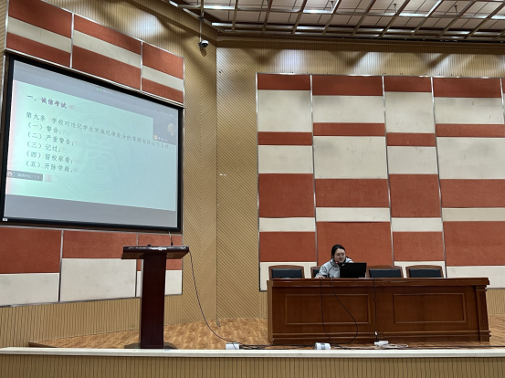 2020级辅导员助理葛鑫月带领大家重温了《学生手册》中关于考试作弊及诚信违规的相关事项,就学校诚信考试要求、纪律处分规定、无法取得毕业证、学位证的情况等进行解读,并从诚信网络、诚信资助的要求鼓励同学们遵守校规校纪,了解高校资助政策,让征信意识和金融风险防范意识入心入脑,增强法律意识。