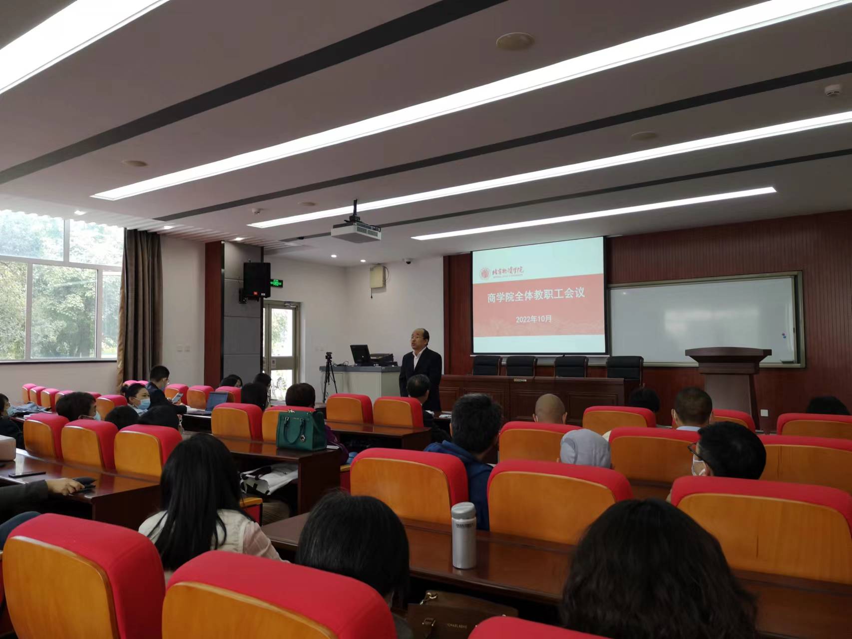 全体教职工会议在知新楼MBA教室召开。会议由学院党委书记魏国辰教授主持, av影片中文字幕
