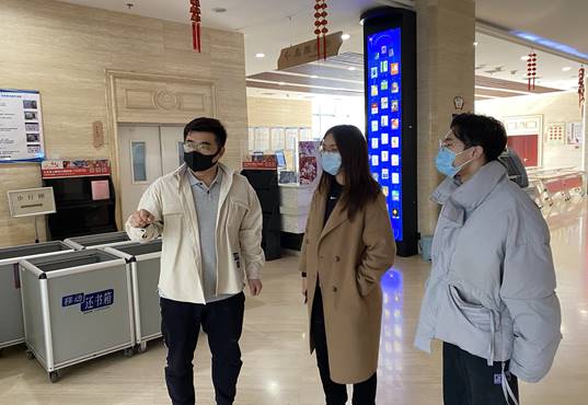 一行参观通州区图书馆,介绍了图书馆的场馆设置情况。