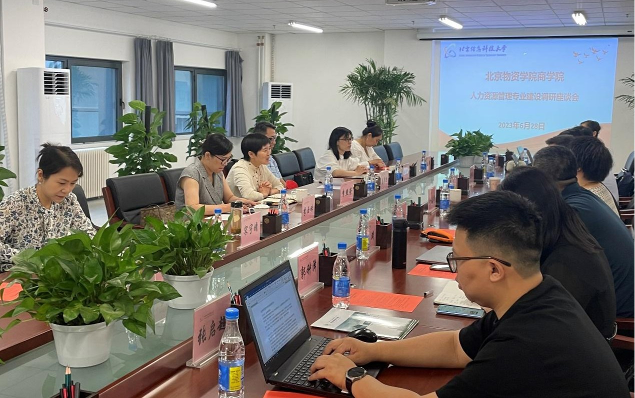 副院长李燕荣、院长助理李玉珠、人力资源管理专业主任唐华茂、人力资源管理系主任张庆红、青年教师宋宇晴前往北京信息科技大学经济管理学院,就人力资源管理专业建设开展调研座谈。经济管理学院党委副书记兼副院长(主持工作)金春华、副院长尹洁林、人力系支部书记姜雨、人力系主任廉串德以及全体人力系教师出席座谈会。廉串德主任从发展历程、培养模式、课程体系、专业特色和影响力建设等各方面向与会成员介绍了人力资源管理专业的建设情况,双方紧紧围绕人力资源管理专业人才培养模式、专业特色凝练、人力资源服务业发展以及就业新形态、人力资源管理专业与行业特色结合、产学协同、有组织科研等共同关心的话题展开了深入交流。