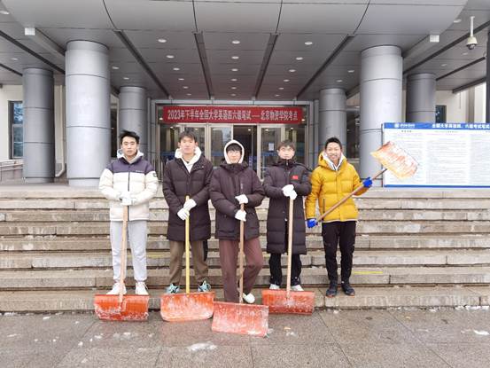 同学们也积极行动起来,加入扫冰铲雪队列,共同守护校园的安全稳定。
