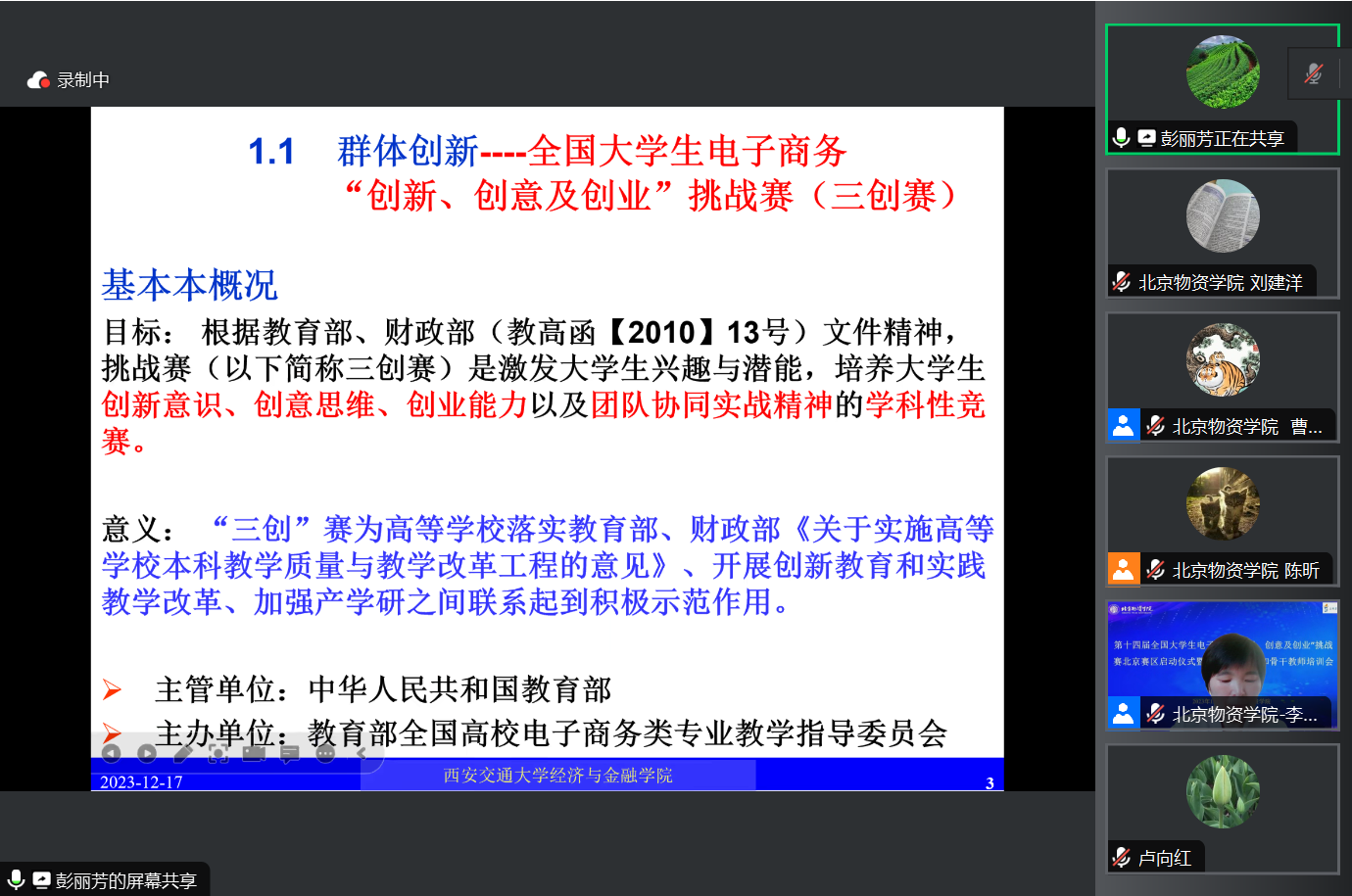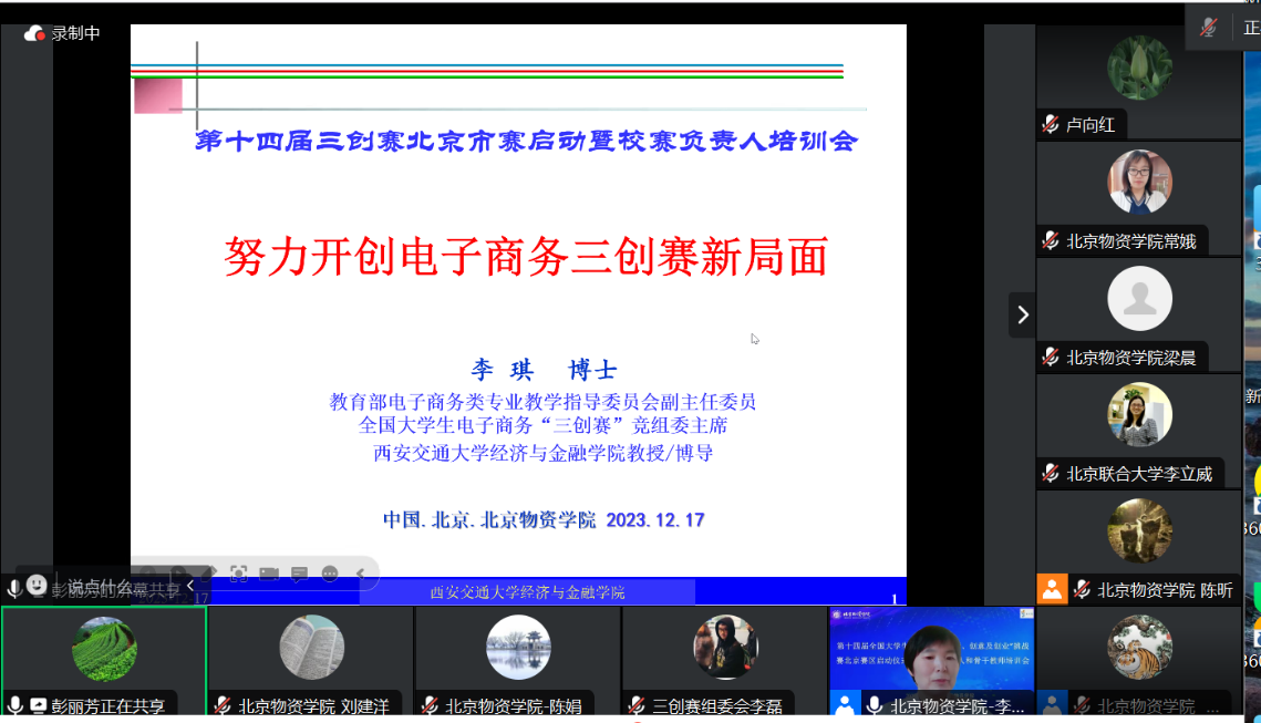 为推动大学生积极参与创新创业实践,提升创新创业知识和技能,2023年12月17日上午,第十四届全国大学生电子商务“创新、创意及创业”挑战赛(以下简称“三创赛”)北京赛区启动仪式暨校级赛负责人和骨干教师培训会在 av影片中文字幕