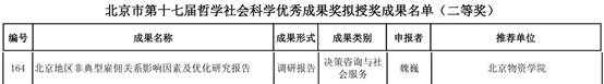 魏巍教授调研报告《北京地区非典型雇佣关系影响因素及优化研究报告》获北京市第十七届哲学社会科学优秀成果奖二等奖。
