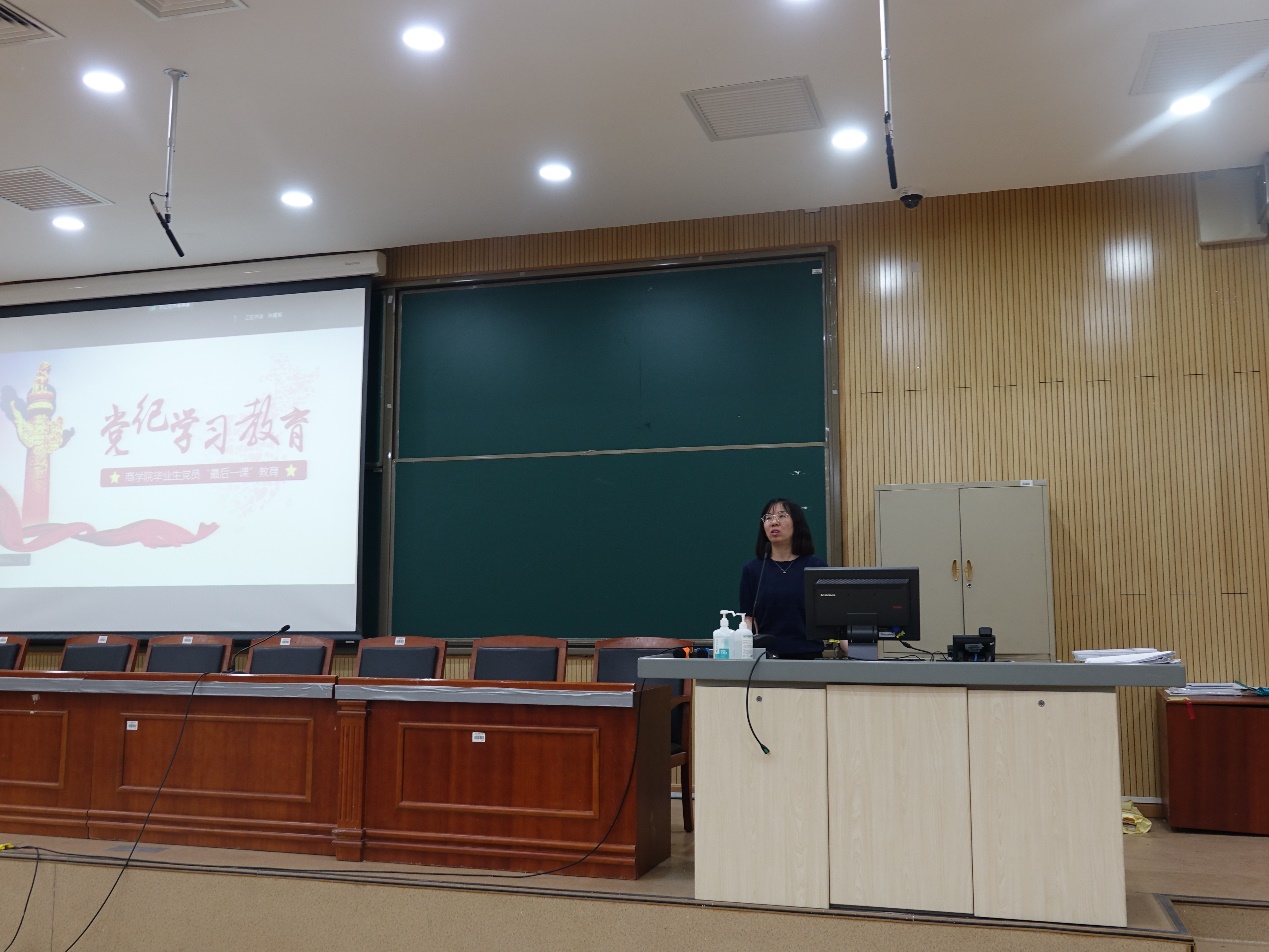 党委副书记陈霄英以《廉洁修身,遵章守纪,做一名忠诚干净担当的时代新人》为题,为师生讲授了专题党课。她围绕党纪学习教育开展的意义与要求,就修订《中国共产党纪律处分条例》(以下简称《条例》)的重要意义、修订的主要内容、抓好《条例》的贯彻执行三个方面,带领党员对新修订的《条例》进行集中深入学习。她强调,全体党员要认真学习领会党的纪律要求,在学纪知纪中坚定理想信念,在明纪守纪中筑牢思想防线,在知行合一中锻造榜样示范,希望全体毕业生党员牢记入党誓词和党员先锋身份,在今后的职业生涯中廉洁自律,敬畏纪法,以奋进青春建功新时代,努力实现自己的人生价值。