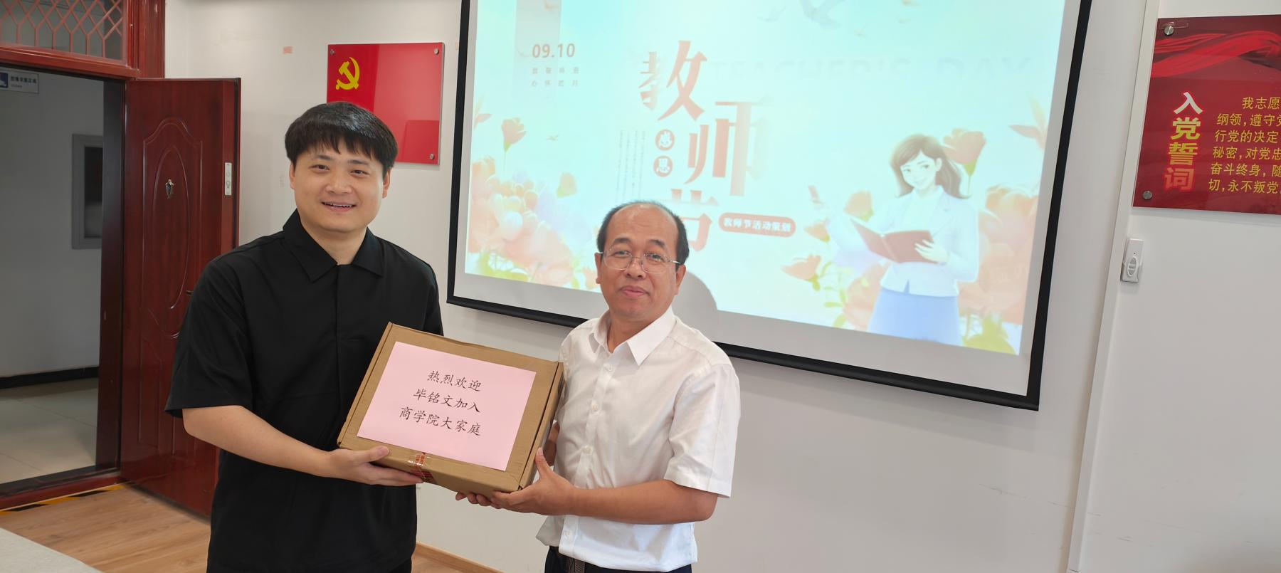吕波院长代表学院为新教师赠送入职工作大礼包,并从科研、教学和育人育才上给予详细的指导,并号召全院教职员工团结一心,相互关爱,为学院高质量发展贡献自己的力量。专业主任,系主任,老教师,年轻教师,辅导员老师,行政工作老师,大家欢聚一堂,谈教学,交流科研,谈生活,说学生教育……三句话不离本行,立德树人,教育教学是核心,为党育人为国育才是使命。