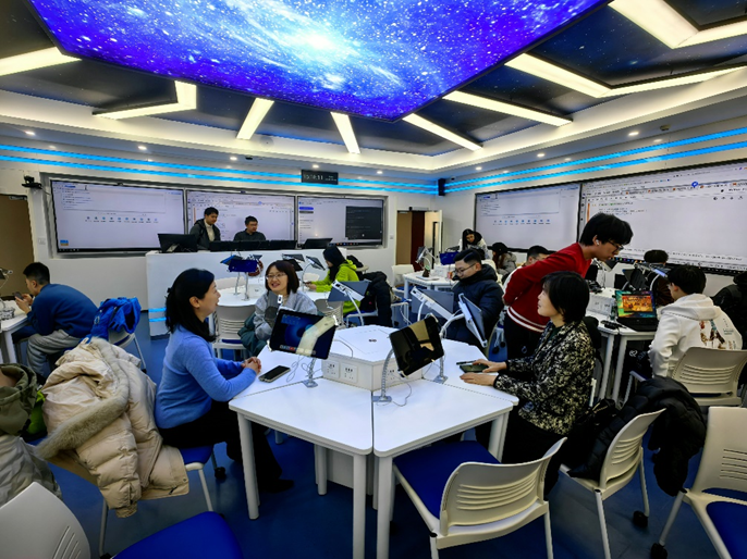 调研观摩了授课教师利用AI技术通过案例分析和模拟实训,加强了学生对专业知识的理解和应用。学生学习兴趣浓厚,见证了其实际操作能力和创新思维的提升。课后交流环节,双方就AIGC技术在教育领域的应用进行了深入讨论。