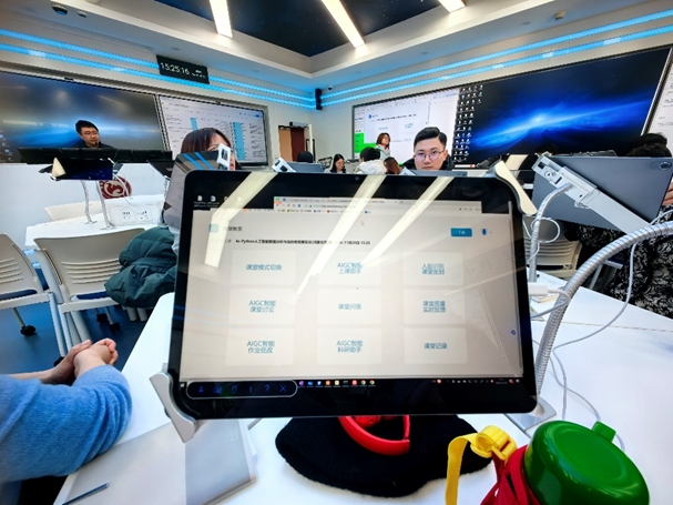 首先参观了配备最新AIGC技术的智能教室,随堂观摩刘经纬教授的本科生授课。装备的智能问答系统和自动评分系统,实时响应学生的提问并给予即时反馈,教师能够准确地掌握每位学生的学习进度和难点,提供更加个性化的教学支持。