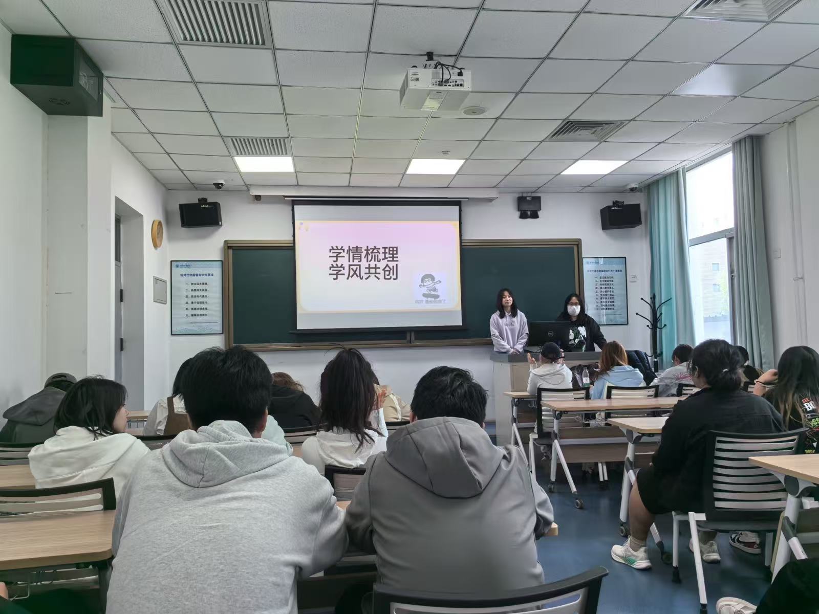 积极响应学校加强学风建设的号召,围绕“学情梳理,学风共创”主题,组织开展了青竹课堂、学风建设班会、共享自习室等活动。帮助学生进一步明确自身学习目标,增强学习动力和班级凝聚力。