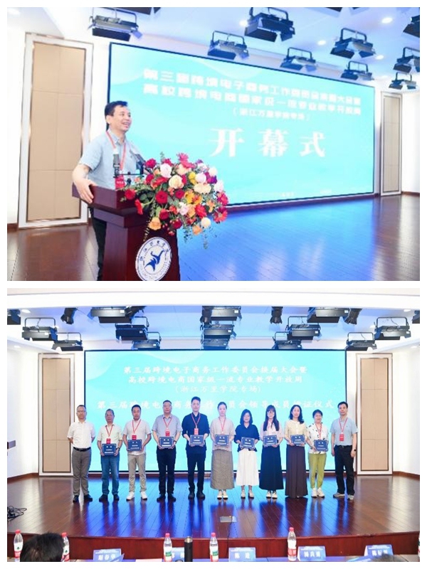 2025年6月6-8日,由中国对外贸易经济合作企业协会、全球电商教育发展联盟、全国跨境电子商务产教融合共同体指导,中国对外贸易经济合作企业协会跨境电子商务工作委员会主办、浙江万里学院物流与电子商务学院承办的第三届跨境电子商务工作委员会换届大会暨高校跨境电商国家级一流专业教学开放周在浙江万里学院图书馆报告厅顺利开幕。