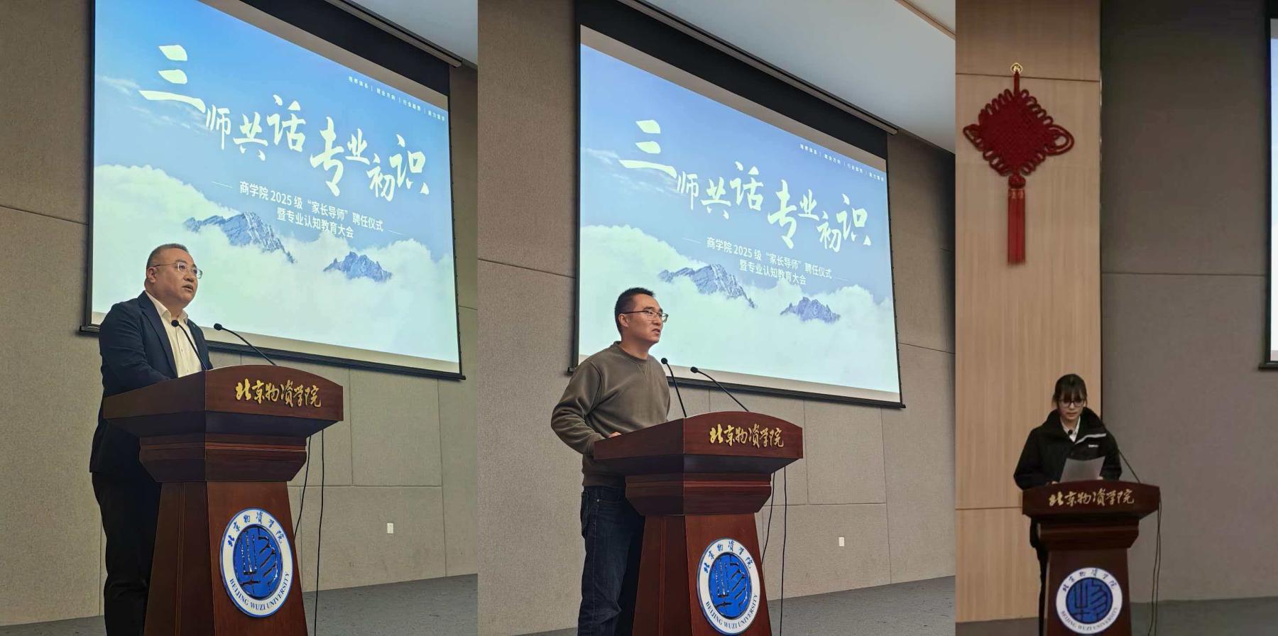 在知新楼举行了2025级“家长导师”聘任仪式暨“三师共话·专业初识”专业认知教育系列活动。党委学生工作部部长常娥,学院领导班子、各系主任、2025级班主任及全体家长导师出席活动。