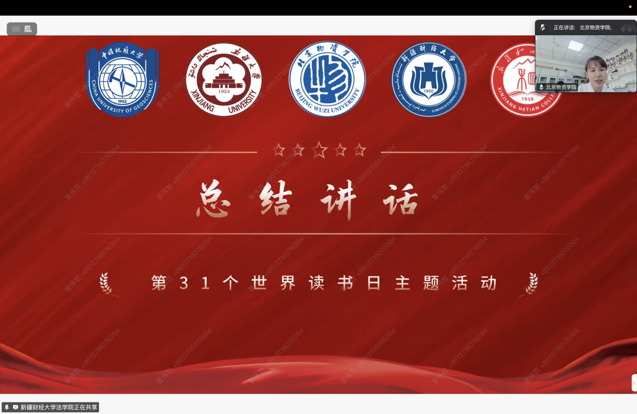 活动以云端会议形式开展,新疆财经大学法学院党委副书记、纪委书记孙春雷主持。中国地质大学(北京)地球物理与信息技术学院党委副书记包敖敦其木格领学习近平总书记关于民族团结的重要论述。随后,各参与高校院系学子依次开启读书分享。