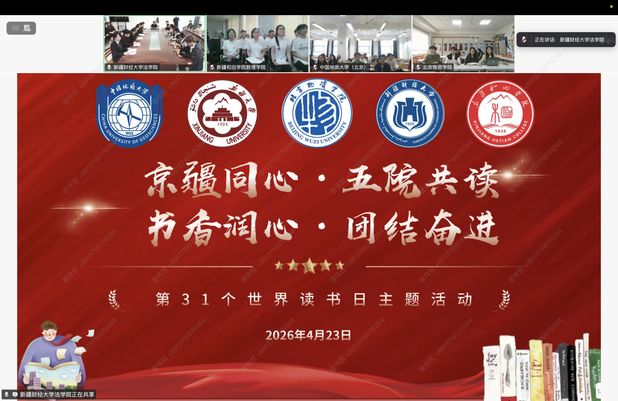 联合京疆四所院校,共同开展“京疆同心·五院共读·书香润心·团结奋进”云端主题读书活动。本次跨地域联动活动由援疆干部董海辰老师牵头统筹,整合多方资源力量,以书香跨越地域阻隔,用共读凝聚青春共识,厚植民族团结深厚情怀。