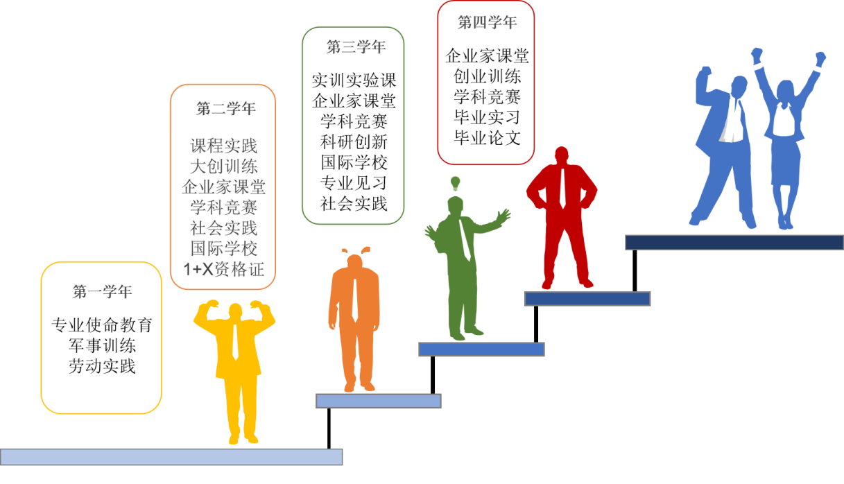 专业实践教学:主动适应新时期经济、社会、科技、文化发展对人才培养的客观要求,借鉴国内外先进的教育教学理念和教学模式,调整和优化专业课程体系,突出“管理+大数据”,“管理+人工智能”课程设计,注重学历教育与职业教育相融合,强化实践教学,及时将前沿优秀学术成果反映到教学,结合“大众创业、万众创新”新常态和首都及北京城市副中心的独特地域条件,集聚校内外创新创业教育资源,以学生为中心构建课内外衔接、校内外结合的多维度训练、阶梯式发展的实践教学体系。