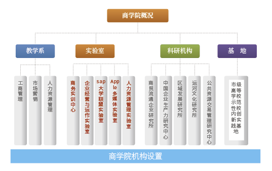 下设工商管理系、市场营销系、人力资源管理系3个学系。建有北京市高等学校示范性校内创新实践基地——商务运作管理创新实践基地,有商务实训中心、企业经营与运作实验室、SAP大学联盟实验室、APPLE多媒体实验室、人力资源管理实验室、社会保障实训实验室等7个实验室;成立有商贸流通企业研究所、中国企业生产力研究中心、区域发展研究所、运河文化研究所、公共资源交易管理研究中心、大宗商品等多个研究机构。
