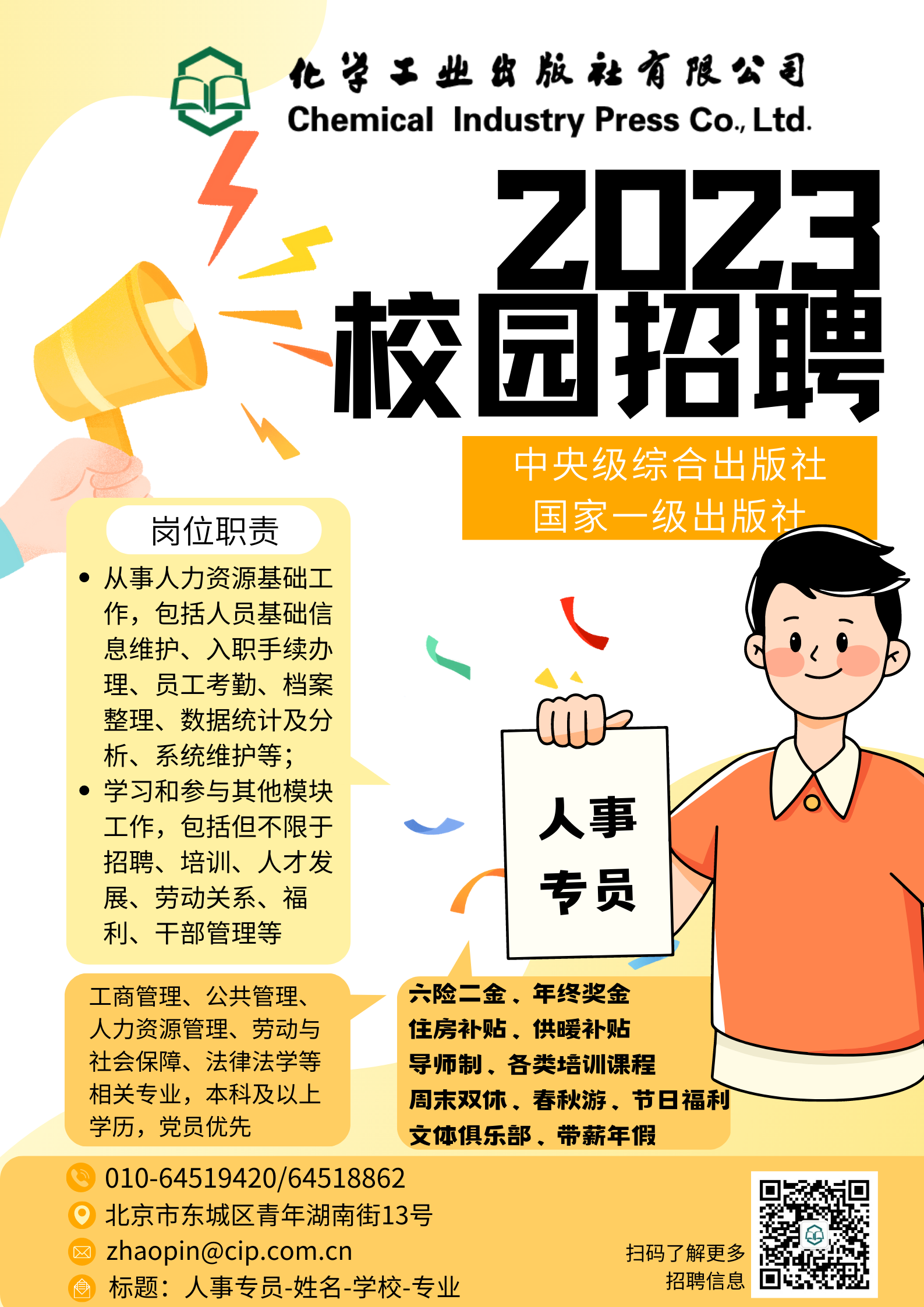 当前位置: 主页 >> 招生就业 >> 就业信息 >> 正文 就业信息 化学工业出版社有限公司招聘人力专员 2023-04-13 点击:[] 要求:本科生,2023年毕业的北京生源,党员/入党积极分子优先