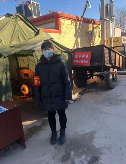 一名党员就是一面旗帜。无论任何时候,任何地方,只要国家需要,人民需要,我们就是践行初心使命的冲锋者,是体现责任担当的试金石石。赵露同学为防控疫情冲锋在疫情防控第一线,发挥战斗堡垒作用和先锋模范作用,积极响应村委号召,在主要卡点处进行管控,严格控制村庄进出人员,对所有进出人员测量体温并登记在册。