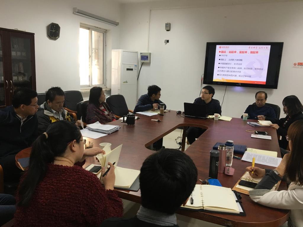 首先,张喜才同志以《十九大与党和延安十三年》为题,结合暑期去延安参观的亲身经历和十九大报告,从“国运、党运、命运、校运”四个方面为大家进行了深入的解读,在场的参会人员也进行了热烈的讨论。随后,郑欣同志带领大家学习了《十九大报告》,从十九大召开的时代背景、历史意义出发,分析了十九大报告提出的“新时代、新矛盾、新思想、新方略、新任务、新征程”,引发了老师们对于自身的工作和生活的思考