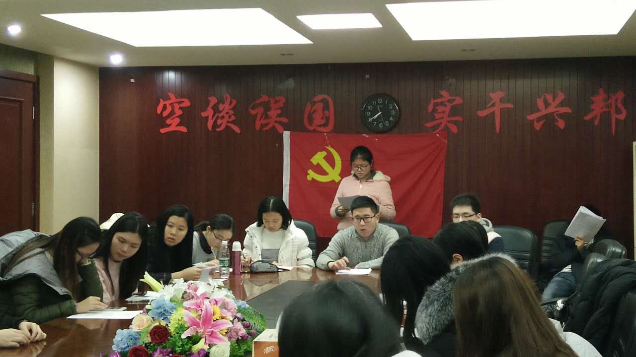首先由主持人彭春颖宣布到场人数以及与会主题。随后,全体起立,面向党旗,奏唱国际歌。紧接着,8名预备党员宣读转正申请书,汇报了自己在预备党员期间的思想以及学习情况。每一名预备党员宣读结束,都由其入党介绍人、与会其他党员对该预备党员是否符合转正条件发表意见。最后,经过正式党员的投票、唱票,8名预备党员一致通过,转为正式党员。
