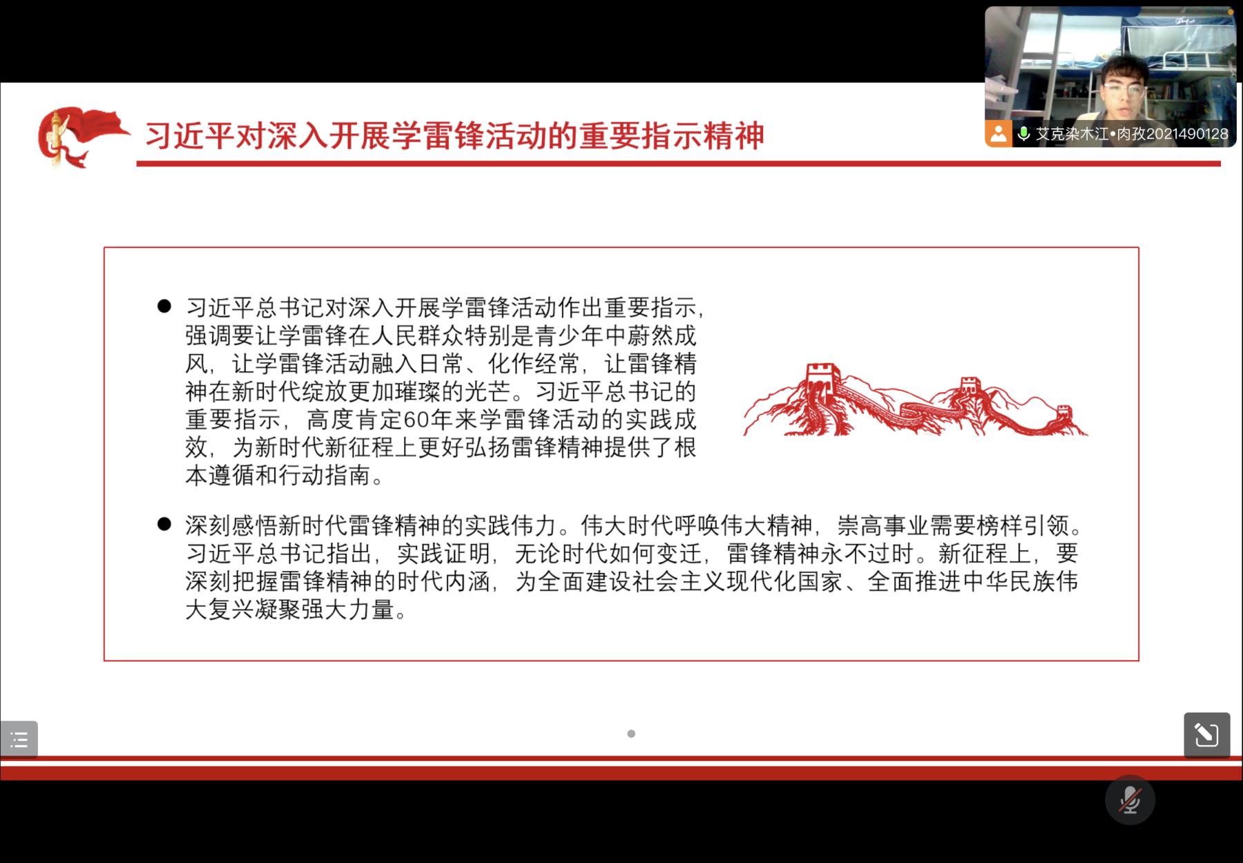 活动伊始,艾克染木江·肉孜同志带领支部同志依次认真学习了: 习近平总书记对深入开展学雷锋活动的重要指示精神、中共中央《中国共产党处分违纪党员批准权限和程序规定》以及2023年全国两会精神 。