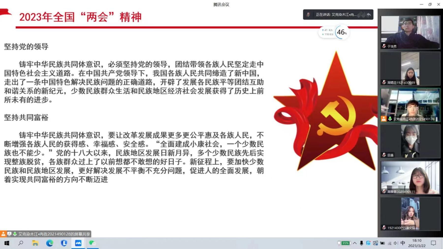 高雅萱同志针对“2023年全国两会精神 ”发表了自己的看法,指出我们作为当代青年,要承担起专业使命,不断奋发学习,提升自我,贡献己力,用拼搏和汗水诠释青年无悔的青春担当。