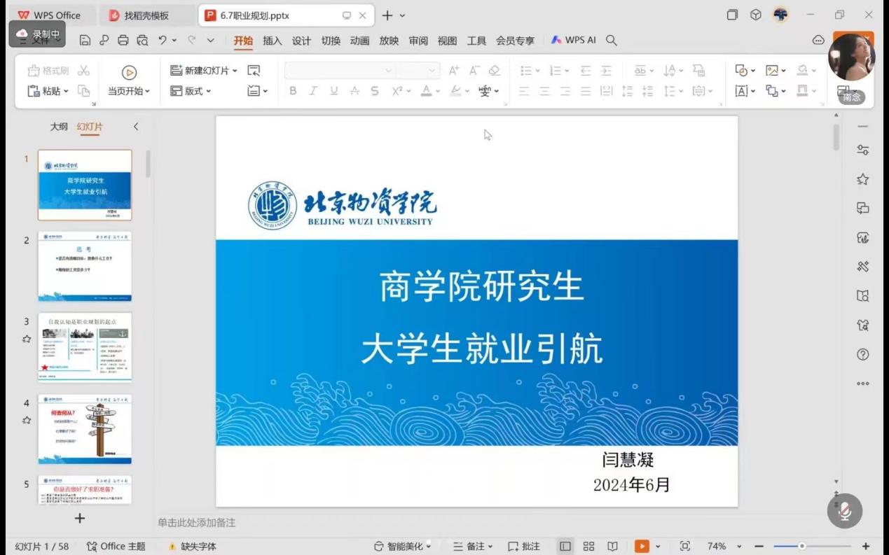 同时,闫老师针对简历制作、面试能力提升进行指导,旨在分享简历完善、面试能力提升的经验,解决同学们在未来求职中的各种问题。闫老师分享的就业经验和心得、求职历程、成功案例,为同学们提供了实际可行的就业指导,让大家对未来的职业规划有了更清晰的认识。最后,针对同学们的个人问题,为同学们提供个性化的就业咨询和指导服务。