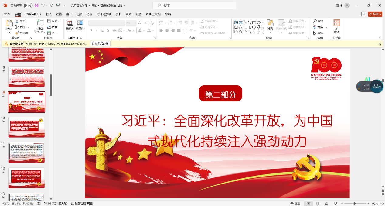 活动伊始,解雨新同志带领支部同志学习了: 1.习近平:发展新质生产力是推动高质量发展的内在要求和重要着力点;2.习近平:全面深化改革开放,为中国式现代化持续注入强劲动力3. 习近平在中共中央政治局第十四次集体学习时的重要讲话精神4.习近平对学校思政课建设作出重要指示精神5.《习近平关于全面加强党的纪律建设论述摘编》解读。