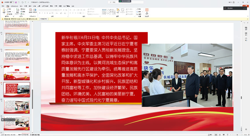 活动伊始,解雨新同志带领支部同志学习了以下内容:1.新时代新征程中国共产党的使命任务2.和平共处五项原则发表70周年纪念大会的讲话3.第十五次集体学习时的重要讲话精神4.习近平宁夏考察的重要讲话5.开创我国高质量发展新局面