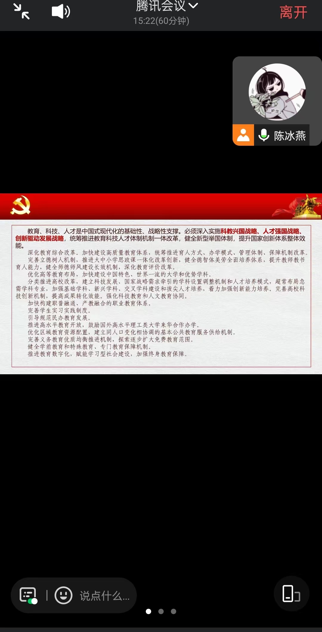 本次会议由第三党小组陈冰燕同志带领大家对会议主题相关内容进行学习。
