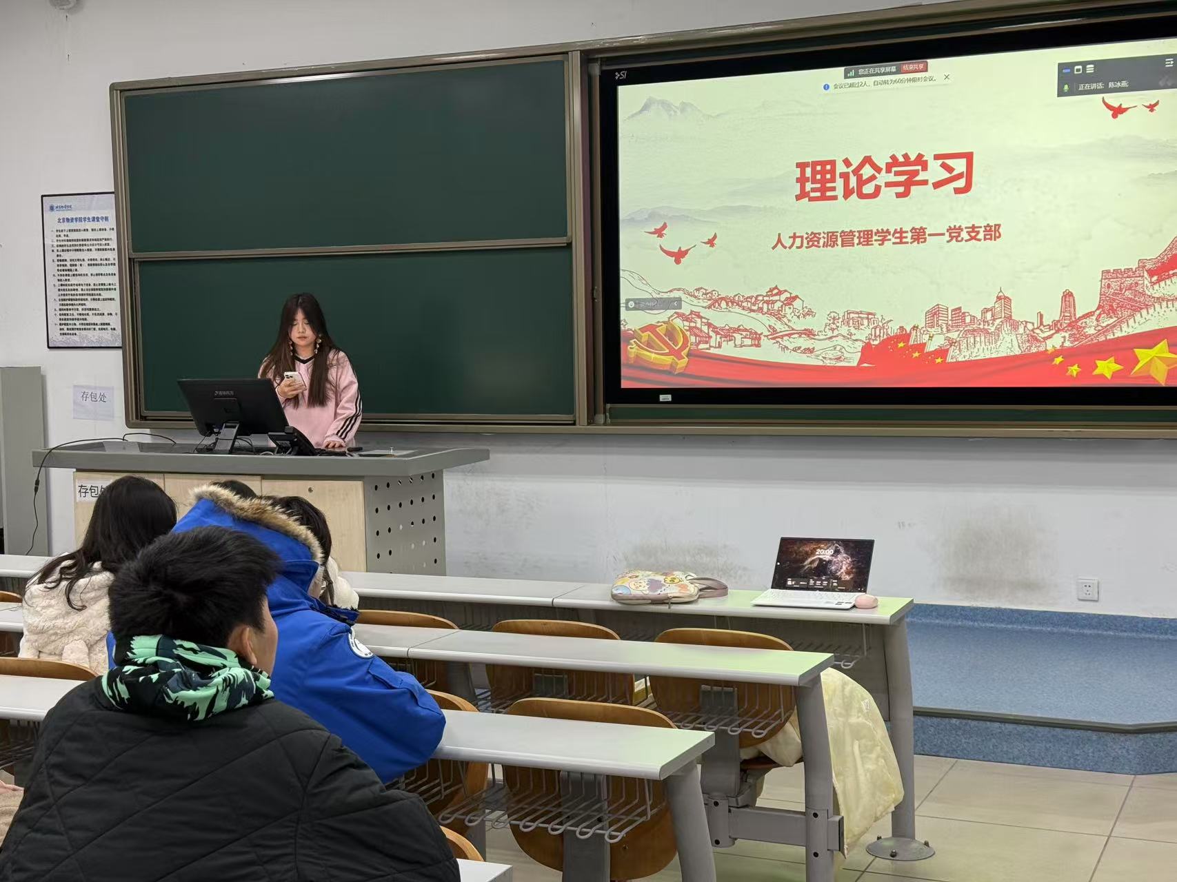 最后,在理论学习结束后,人资学生第一党支部书记董海辰同志就此次理论学习会议进行总结:新时代新征程,要坚持守正创新,深入学习宣传贯彻习近平新时代中国特色社会主义思想,着力深化体系化、学理化研究阐释,着力增强学习宣传的针对性、实效性,加强党的创新理论更加深入人心。