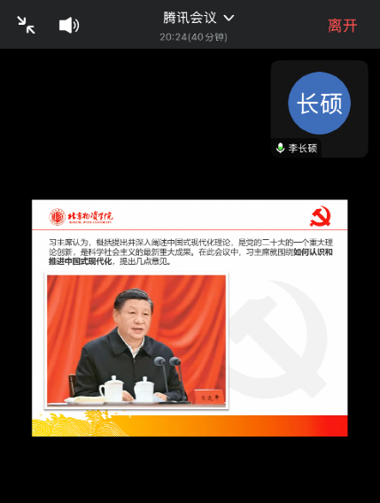 会议主持人党支部书记闫慧凝同志对本次理论学习会的主题及学习内容进行简单陈述。本次理论学习会的主题是国家主席习近平二零二五年新年贺词、在中共中央政治局民主生活会上的重要讲话、在中央经济工作会议上的重要讲话、在第二十八次全国高校党的建设工作会议上的重要讲话及中国共产党北京市第十三届委员会第六次全体会议决议。经过学习,我们应对国家2025年进行充分展望和鼓励、以中国式现代化全面推进强国建设、深入进行党内改革等有深刻的认识和了解,同时也要对其进行充分的思考与总结。