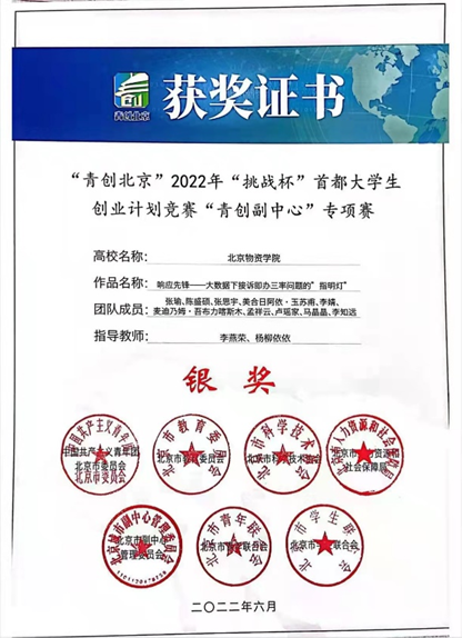 组织家庭经济困难学生组队参加“青创北京”2022年“挑战杯”竞赛,许多家庭经济困难学生积极响应学院号召,结合不同专业优势,邀请专业课教师作为指导教师确定选题及实践主题和内容,在专业教师的指导下,按照参赛要求积极准备,在准备比赛的过程中与团队成员充分交流,锻炼了沟通能力,在团队分工中锻炼了组织协调能力,在报告成果上锻炼了文字写作能力,综合提升了自身实践能力。