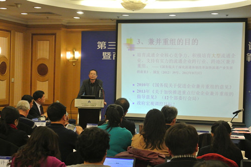 之后,论坛进入核心的学术报告部分。首先上台发言的是著名经济专家黄国雄教授,黄教授从当前经济环境,宏观环境的情况分析得出市场将发挥决定性配置作用的观点,并与参会人员交流了流通是国民经济运营基础,商业是城市的基础等看法。紧接着,著名物流专家的王之泰教授则紧扣近期物流方面的热点新闻,主要阐述了对于体制性成本与智慧物流这两个对物流发展有重要影响的问题的思考,并重点解释了对于智慧物流的定位。随后,多位专家学者上台发表演讲,与参会嘉宾围绕商贸流通企业未来走向、商贸流通企业融合重组途径与方法、商贸流通企业重组后管理、人才、战略、文化融合、提升商贸流通企业核心竞争力等大家关心的热点与难点问题进行了探讨。