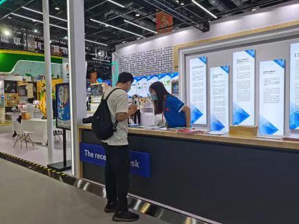 服务于会台前的志愿者,会为每一位前来咨询的来宾做出最细致的解答,同时还会以热情的态度将展会为来宾准备礼物双手送出,传递一份小小的温暖。