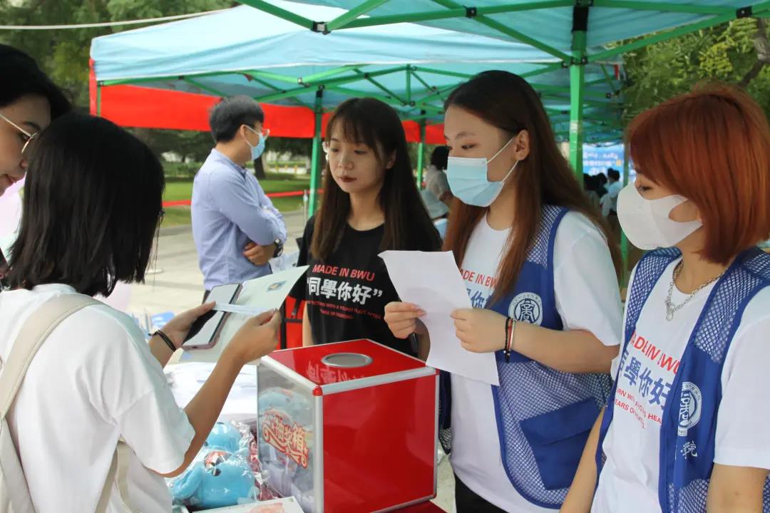 宿舍楼下的耐心等待,篮球场楼梯口的上下搬运,校门口和宿舍的来回往返,志愿者们始终带着亲切的微笑,认真负责地为新生引路。为了缓解搬运行李带来的疲惫,我们还特意准备了党史问答活动,为新生送上一份入校小礼品。