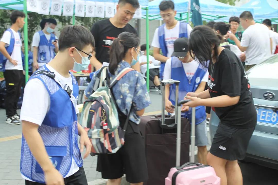 新生保驾护航,在雨中提供最温暖志愿帮扶,让寂静许久的校园,再次响起了同学们的欢声笑语。