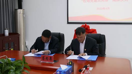 魏国辰与宋庄镇党委书记任存高签署了共建协议,并为“校地党建共同体”基层党建揭牌。下一步,双方将以此共建揭牌为契机,从党建+思政集群、党建+人才集群、党建+育人集群、党建+双创集群、党建+治理集群五方面展开共建活动,促进资源共享、优势互补、工作互动,实现党建引领人才培养和地方建设发展取得新突破。