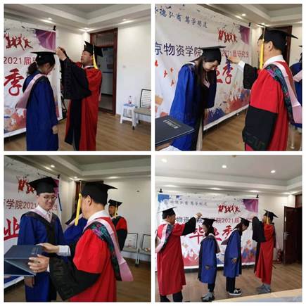 举办学位授予仪式。同学们按顺序依次走上主席台,学院领导、教授为获得硕士学位的研究生扶正流苏,送上真挚的祝福。