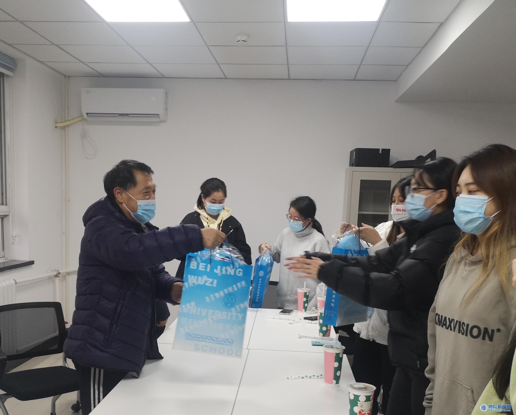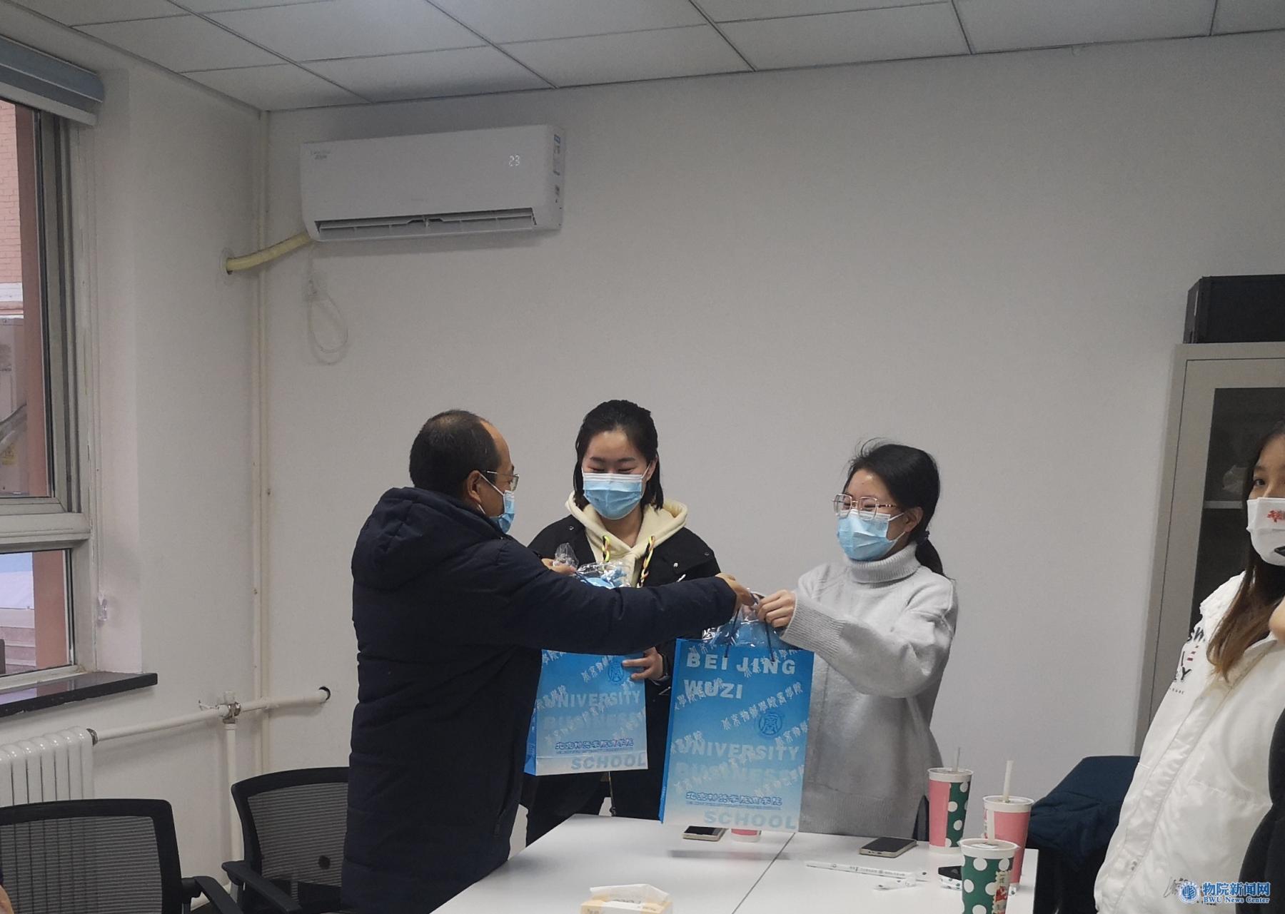 随后,学院领导班子代表全体师生为志愿者们送上学院吉祥物、保温杯、手账本以及生活用品在内的爱心礼包,并送上真挚祝福:让我们“相约冬奥、志愿有我”,发扬物院精神,期盼大家圆满完成任务、平安凯旋!