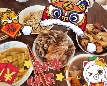 年夜饭又名团圆饭,是在除夕这一天人们准备除旧迎新,一家团聚,共进晚饭。席上一般有鱼类(寓意年年有余)、汤圆(寓意团团圆圆)、莲藕(寓意聪明)等菜品以求新年吉利。这也是对来年美好生活的期许。年夜饭,吃的是喜悦,品的是亲情,缕缕饭香中闻到的是家的味道。一年一度的年夜饭充分表达了中华家庭儿女们互敬互爱,互帮互助。这种互敬互爱使一家人的关系变得更加密切,这种互帮互助使一家人之间的关系变得更加紧密相连。